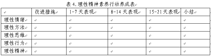 (二)对照行为养成表进行自我践行,培养基于行动的理性精神素养
